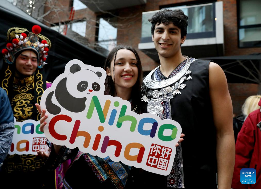 Performers pose for photos during a Chinese New Year celebration at Camden Market in London, Britain, Feb. 1, 2025. (Xinhua/Li Ying)