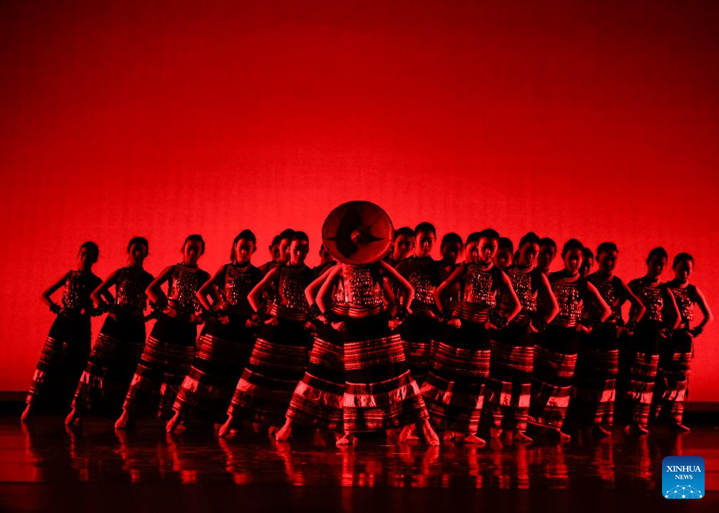 Students from the art troupe of the High School Affiliated to Renmin University of China perform during the Chinese New Year Showcase in Chicago, the United States, Feb. 1, 2025.(Photo by Joe Lerner/Xinhua)