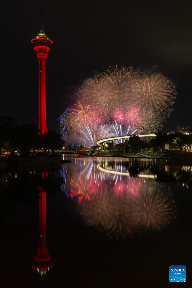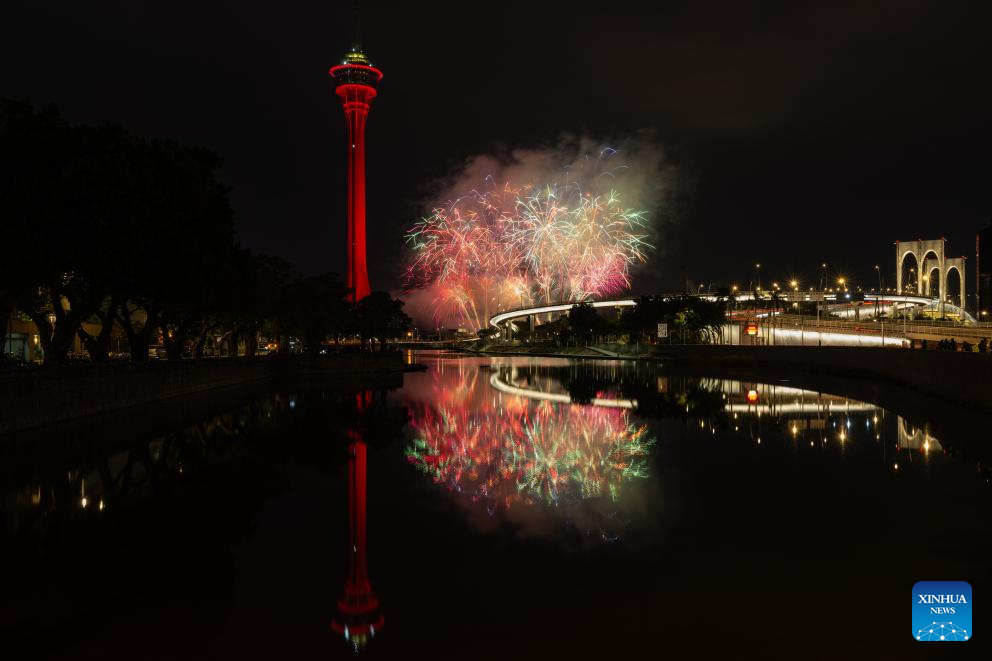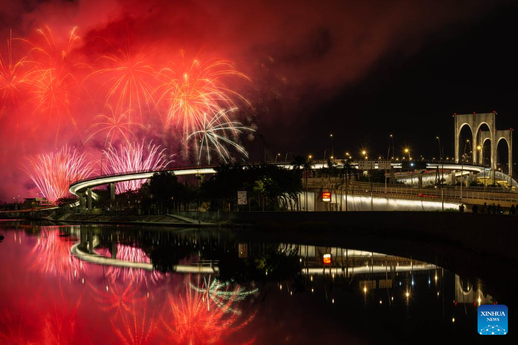 Fireworks in celebration of the Spring Festival illuminate the sky in Macao, south China, Feb. 4, 2025. (Xinhua/Cheong Kam Ka)