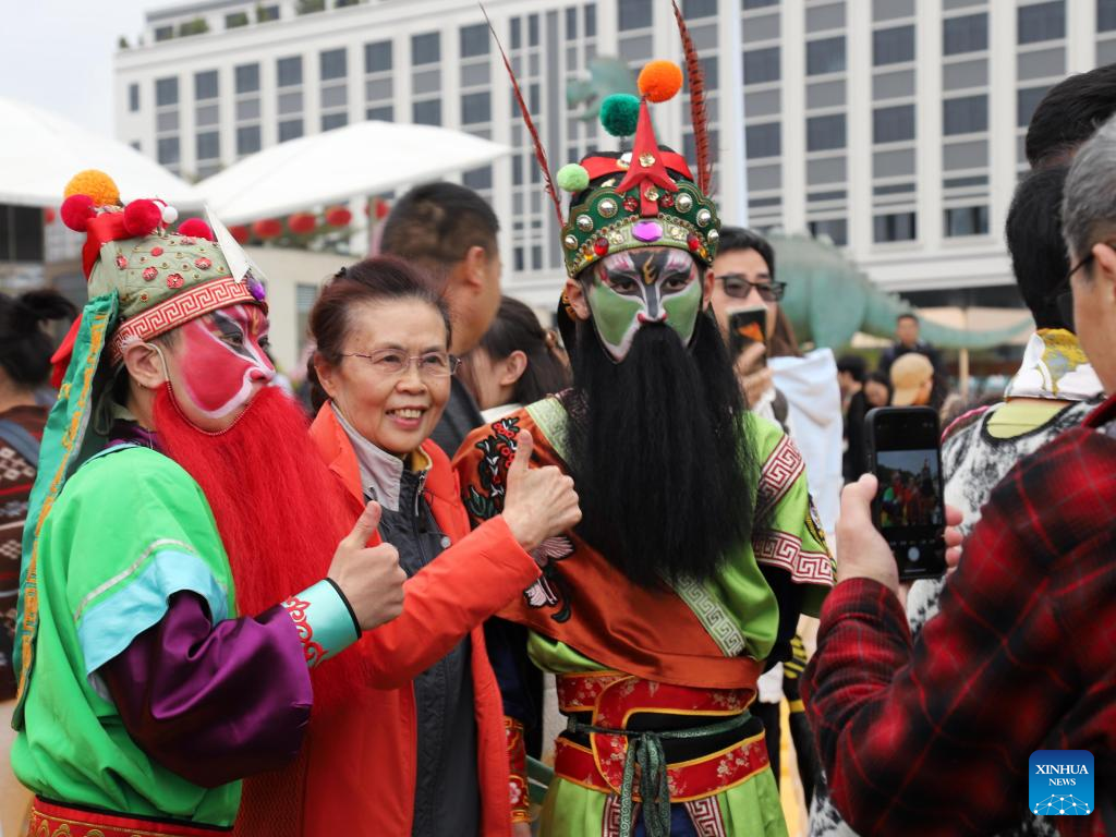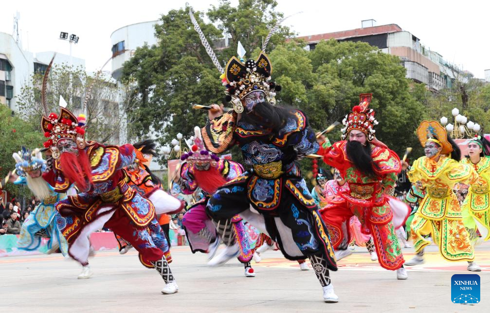 A Yingge dance team performs during an event celebrating the Spring Festival in Shantou, south China's Guangdong Province, Feb. 2, 2025. (Photo by Yao Jun/Xinhua)