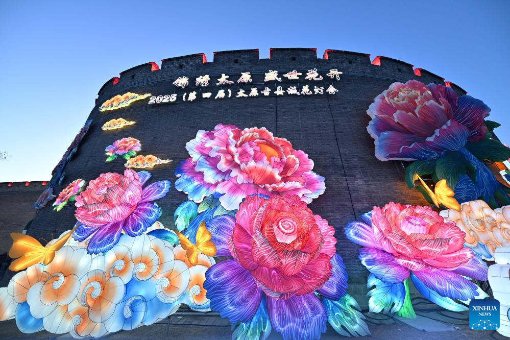 This photo taken on Feb. 5, 2025 shows a lantern installation at a lantern show held in Taiyuan Ancient County scenic spot in Taiyuan, north China's Shanxi Province. (Xinhua/Zhan Yan)