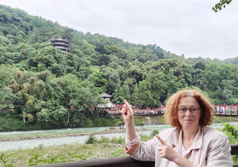 Camilla Eyres poses for a picture in Dujiangyan, southwest China's Sichuan Province. (Photo provided by Camilla Eyres)