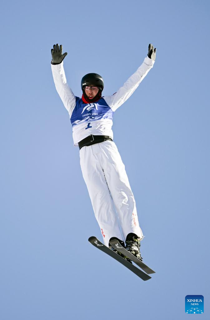 Qi Guangpu of China competes during the Freestyle Skiing men's aerials final match at the 9th Asian Winter Games in Yabuli, northeast China's Heilongjiang Province, Feb. 9, 2025. (Xinhua/Xia Yifang)