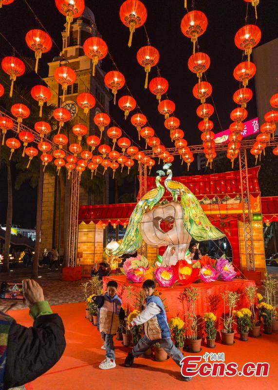 Dazzling lanterns are displayed at Hong Kong Cultural Center ahead of the Lantern Festival in the Hong Kong Special Administrative Region, Feb. 9, 2025. (China News Service/Hou Yu)