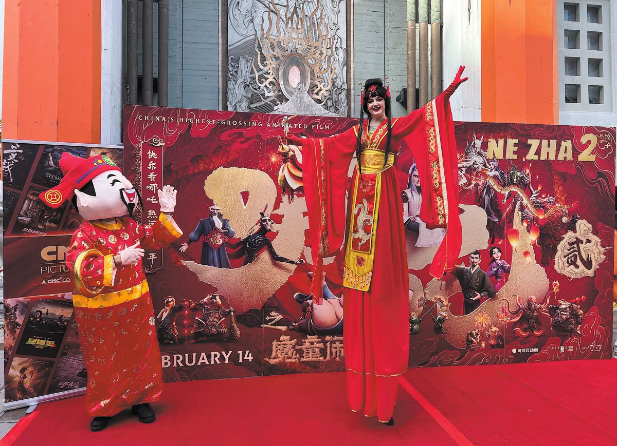 Performers entertain at the premiere of hit Chinese film Ne Zha 2 at the TCL Chinese Theatre in Hollywood, Los Angeles, in the US state of California, on Saturday. (Rena Li/China Daily)