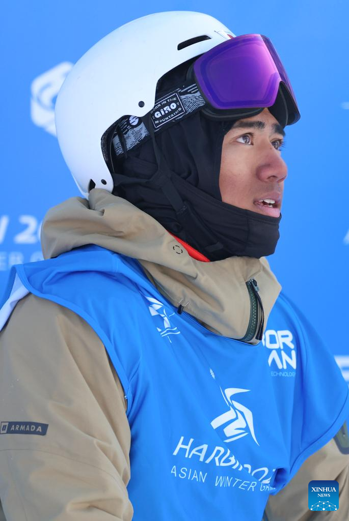Kasamura Rai of Japan reacts during the Freestyle Skiing men's freeski slopestyle final at the 9th Asian Winter Games in Yabuli, northeast China's Heilongjiang Province, Feb. 11, 2025. (Xinhua/Yang Qing)