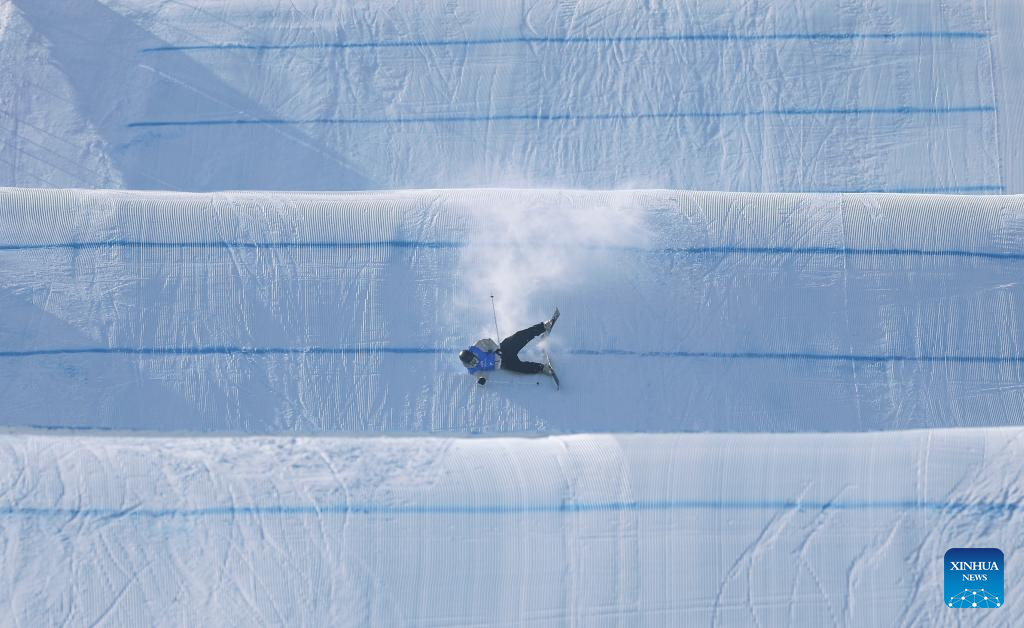 Lin Hao of China competes during the Freestyle Skiing men's freeski slopestyle final at the 9th Asian Winter Games in Yabuli, northeast China's Heilongjiang Province, Feb. 11, 2025. (Xinhua/Mu Yu)