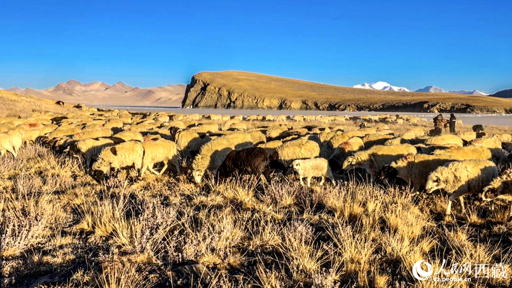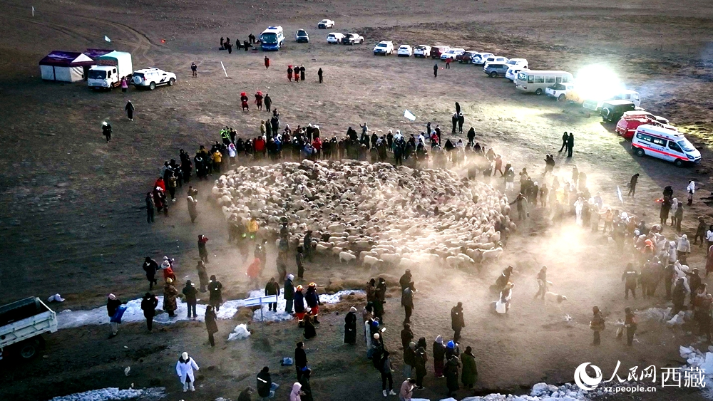 As the first rays of sunlight hit Puma Yumco Lake, located at an altitude of over 5,000 meters in Nagarze county of Shannan, southwest China's Xizang Autonomous Region, the ice-covered surface sparkled like a sapphire. A millennia-old tradition—sheep herding on ice—took place.