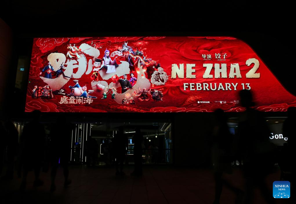 Audience line up to attend the premiere of the Chinese fantasy feature "Ne Zha 2" at IMAX Sydney in Sydney, Australia, Feb. 11, 2025. (Xinhua/Ma Ping)