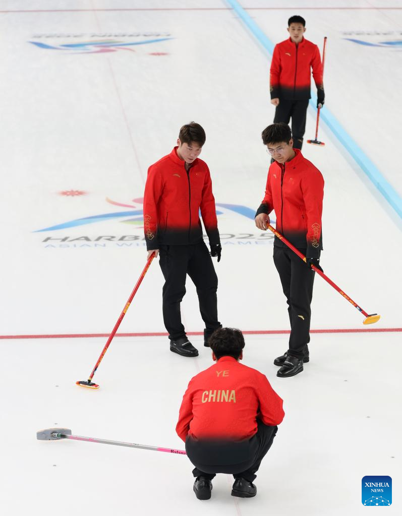 HARBIN, Feb. 11 (Xinhua) -- China secured a berth to the men's curling play-offs with one match remaining in the round robin after crushing Thailand 16-1 for a fourth consecutive win in Group B at the Harbin 2025 Asian Winter Games on Tuesday.