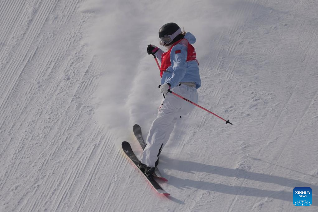 Liu Mengting of China competes during the Freestyle Skiing women's freeski big air at the 9th Asian Winter Games in Yabuli, northeast China's Heilongjiang Province, Feb. 12, 2025. (Xinhua/Zhang Chenlin)