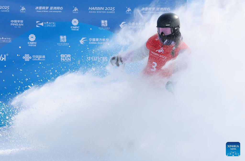 Han Linshan of China competes during the Freestyle Skiing women's freeski big air final match at the 9th Asian Winter Games in Yabuli, northeast China's Heilongjiang Province, Feb. 12, 2025. (Xinhua/Zhang Chenlin)