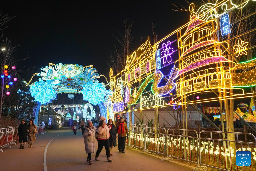 People visit a lantern fair at Beijing Garden Expo Park in Beijing, capital of China, Feb. 10, 2025. Two major lantern fairs are held in Beijing to mark the Lantern Festival, which falls on Wednesday. (Xinhua/Ju Huanzong)