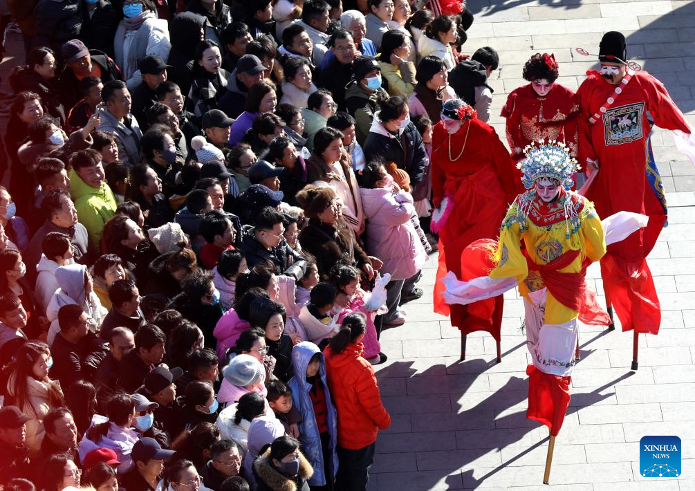 Stilt artists perform at Nanchuan old street scenic spot in Cangzhou City, north China's Hebei Province, Feb. 12, 2025. Various activities were held across China to celebrate the Lantern Festival, which falls on the fifteenth day of the first month of the Chinese lunar calendar. (Photo by Zhou Yang/Xinhua)