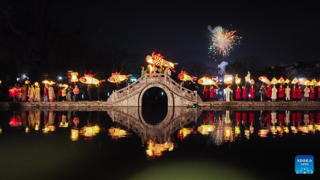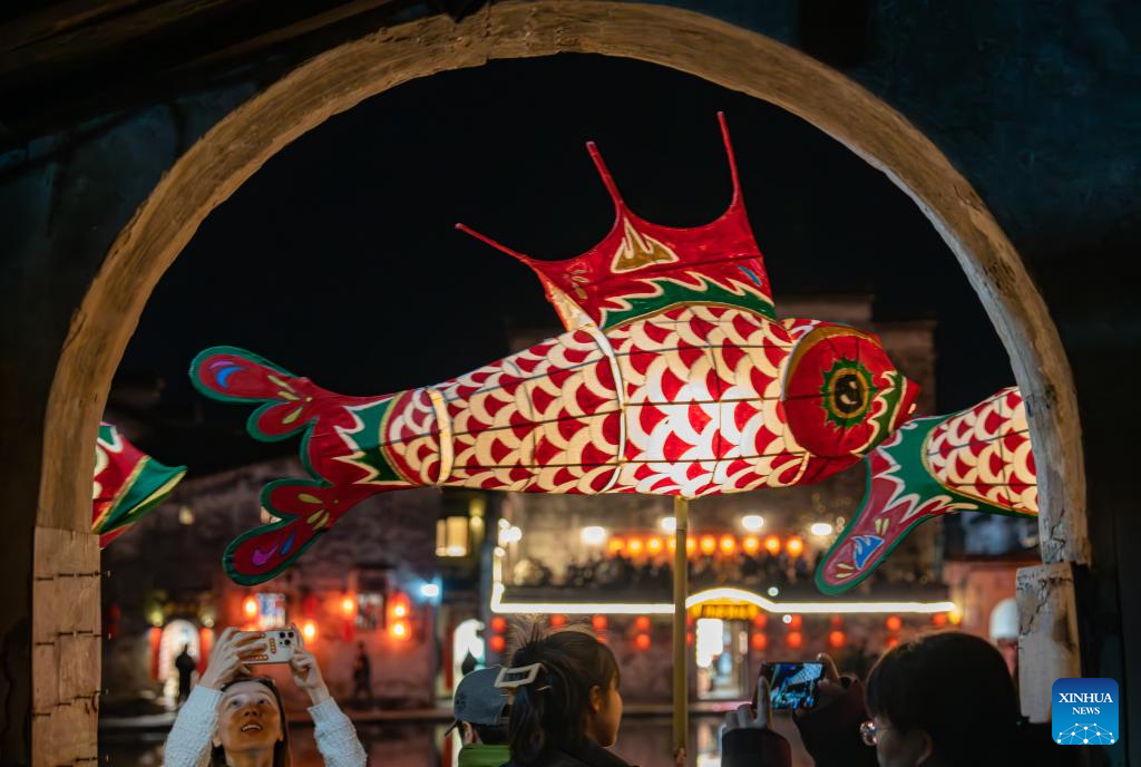 People celebrate Lantern Festival with fish-shaped lanterns in E China's Anhui