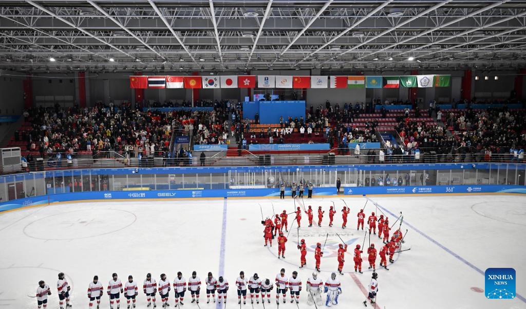 HARBIN, Feb. 12 (Xinhua) -- China defeated South Korea 2-1 in a women's ice hockey Group A match at the 2025 Harbin Asian Winter Games on Wednesday, and Japan cruised past Kazakhstan 4-0.