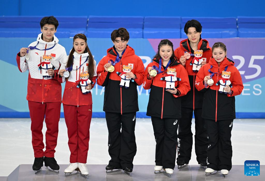 HARBIN, Feb. 12 (Xinhua) -- Ren Junfei and Xing Jianing secured China's first figure skating medal in the ice dance event at the Harbin Asian Winter Games, while Cidanyuzhen and Buluer led Chinese skiers to a podium sweep in the ski mountaineering mixed relay on Wednesday.