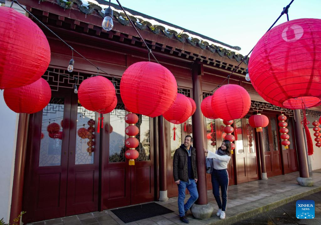 People view lantern decorations during a community event celebrating the Lantern Festival in Vancouver, British Columbia, Canada, Feb. 12, 2025. (Photo by Liang Sen/Xinhua)