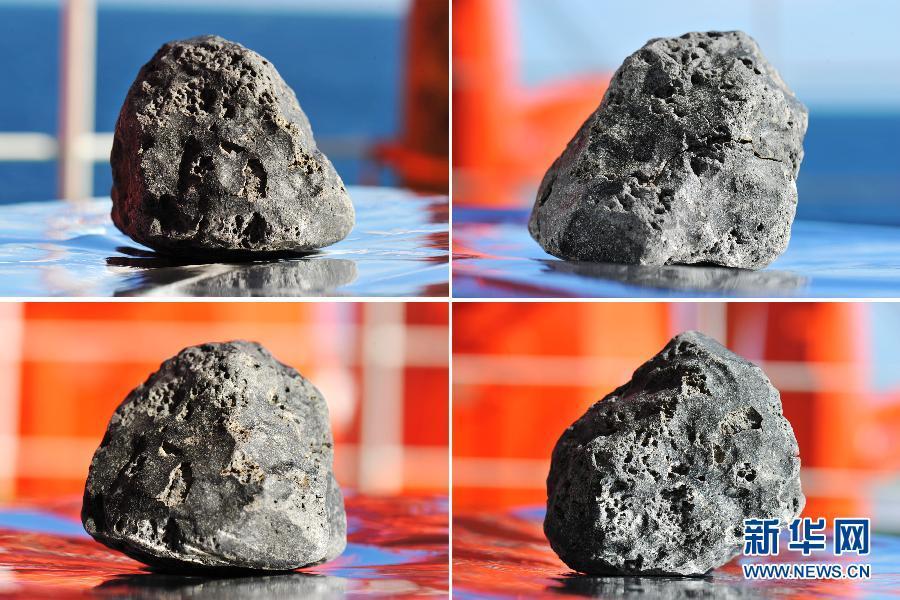 Pictures taken on March 20, 2014 show a Vesta meteorite from different angles. Chinese researchers found 583 meteorites that fall to Earth at Grove Mountains during 30 years of scientific expedition to the Antarctic. The largest one weighs 1,300 grams, was from Vesta, and get numbered GRV13001. (Photo/Xinhua)