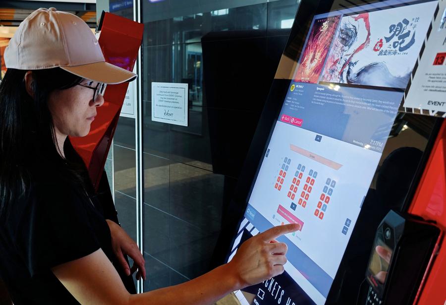 A woman purchases ticket of the Chinese animated feature "Ne Zha 2" at a cinema in Auckland, New Zealand, Feb. 12, 2025. (Photo by Wu Jiaxiang/Xinhua)