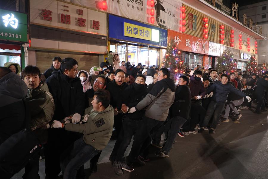 Residents participate in the tug of war event, Feb. 11, 2025. (Xinhua/Fan Peishen)