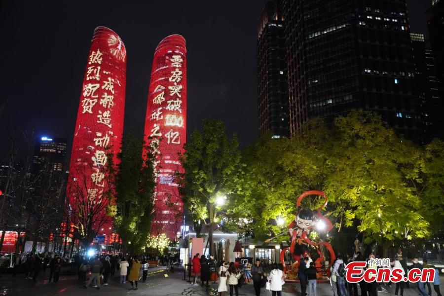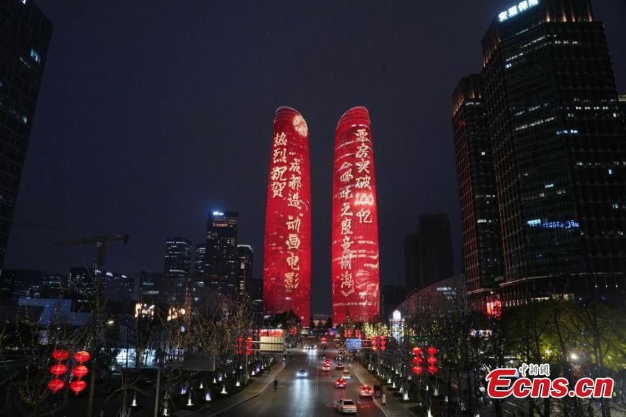 Chengdu's landmark buildings illuminated to mark record-breaking film 'Ne Zha 2'
