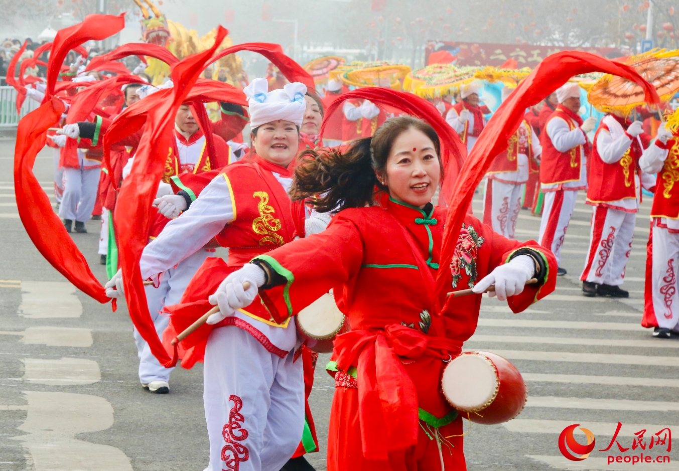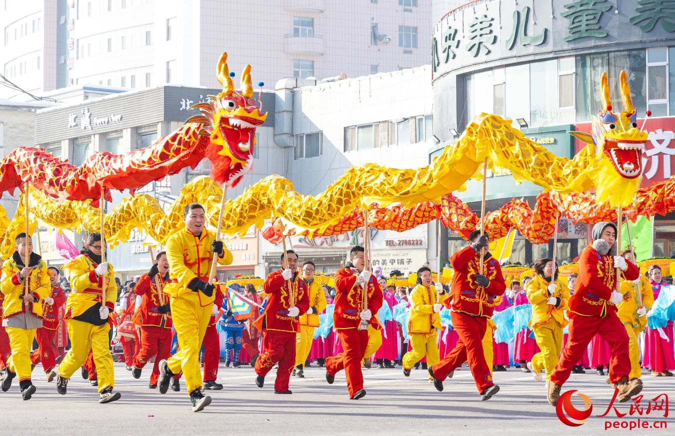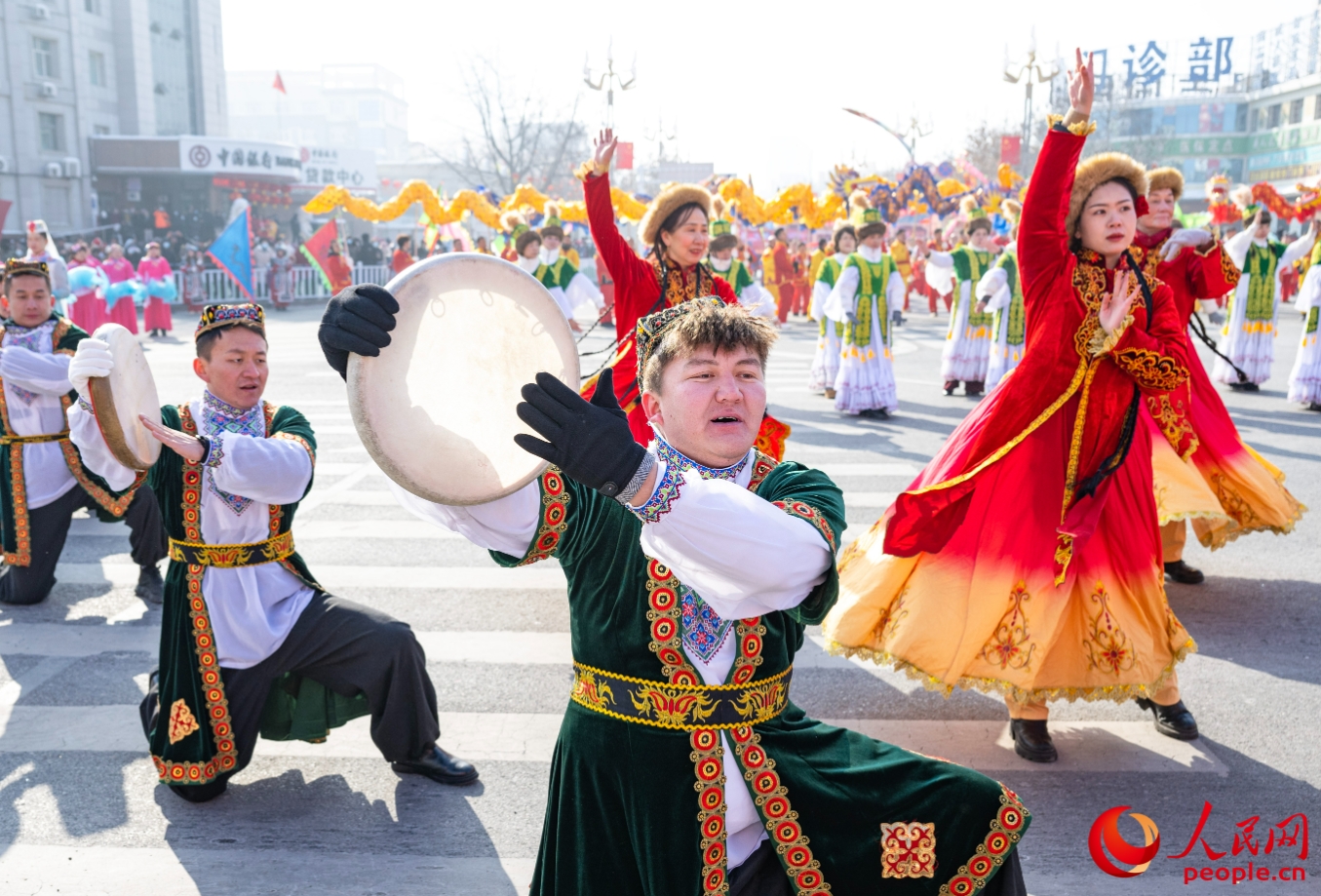 A Shehuo parade is held in Changji city, Changji Hui Autonomous Prefecture, northwest China's Xinjiang Uygur Autonomous Region on Feb. 12, 2025. (People's Daily Online/Li Long)