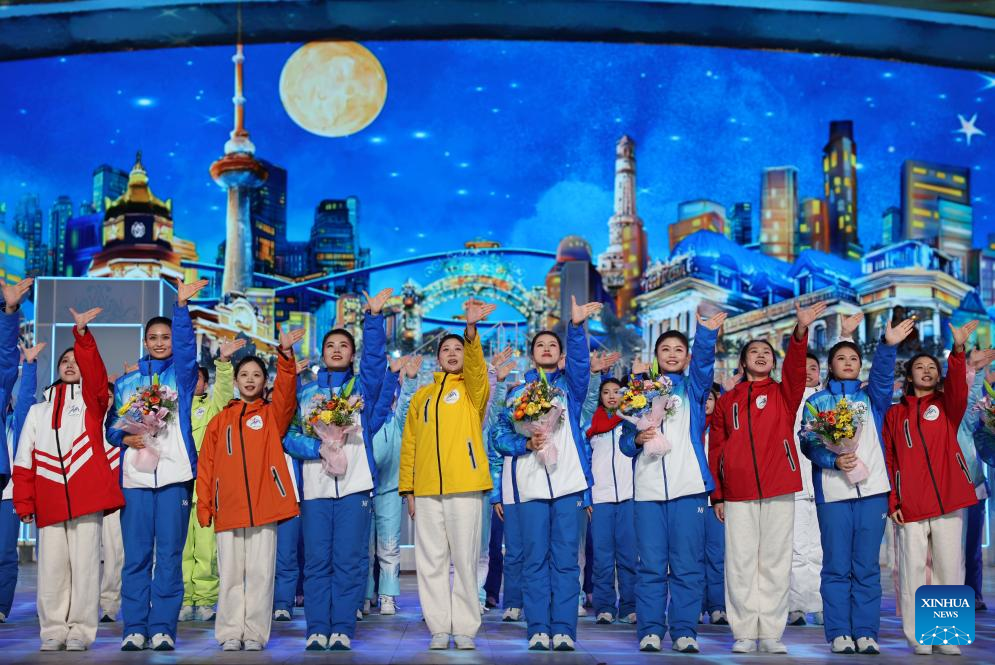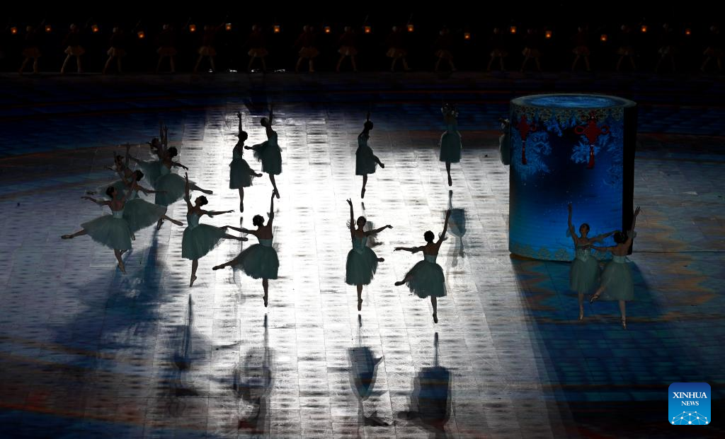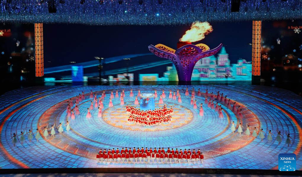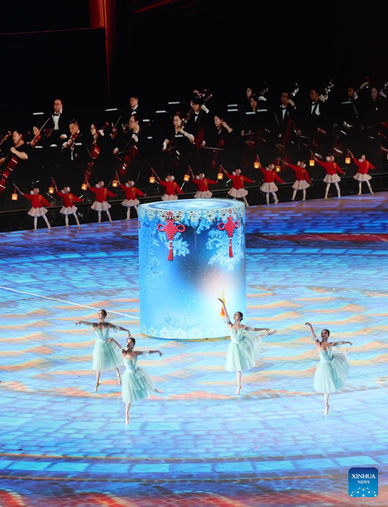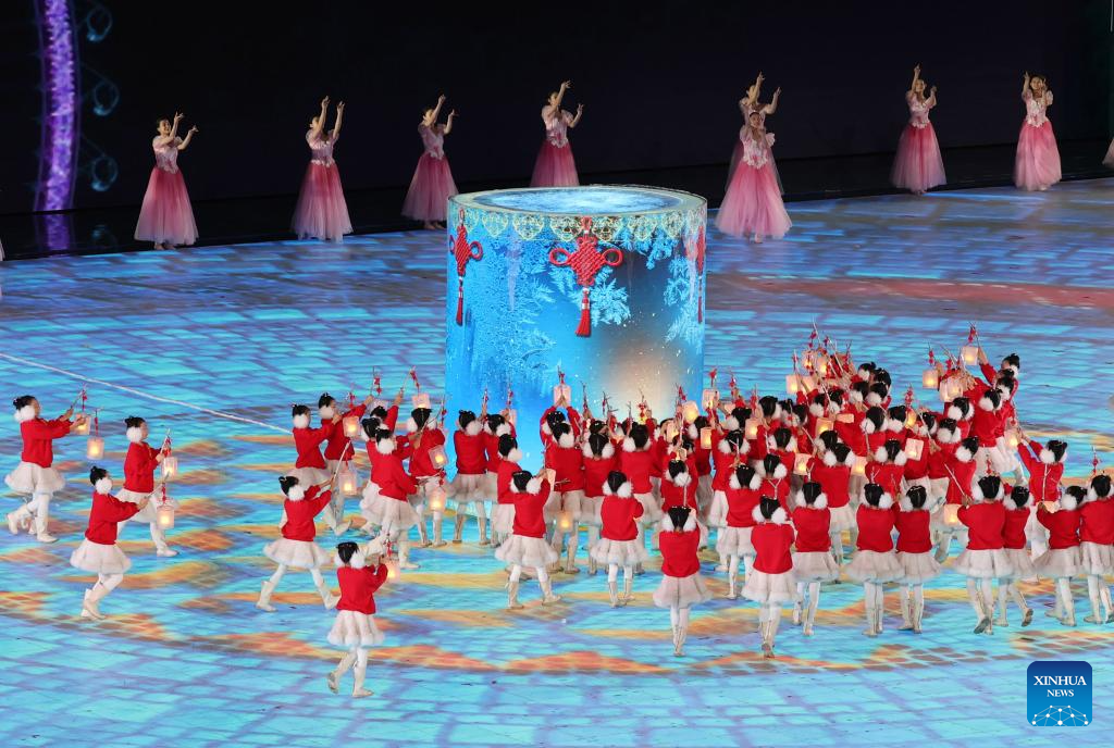 Artists perform during the closing ceremony of the 9th Asian Winter Games in Harbin, northeast China's Heilongjiang Province, Feb. 14, 2025. (Xinhua/Lai Xiangdong)