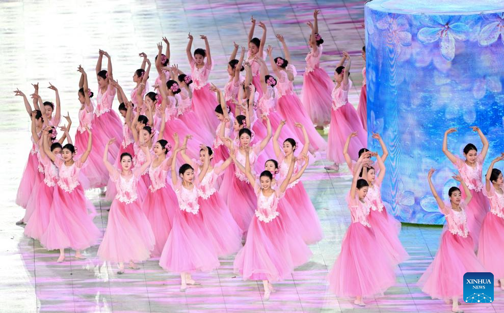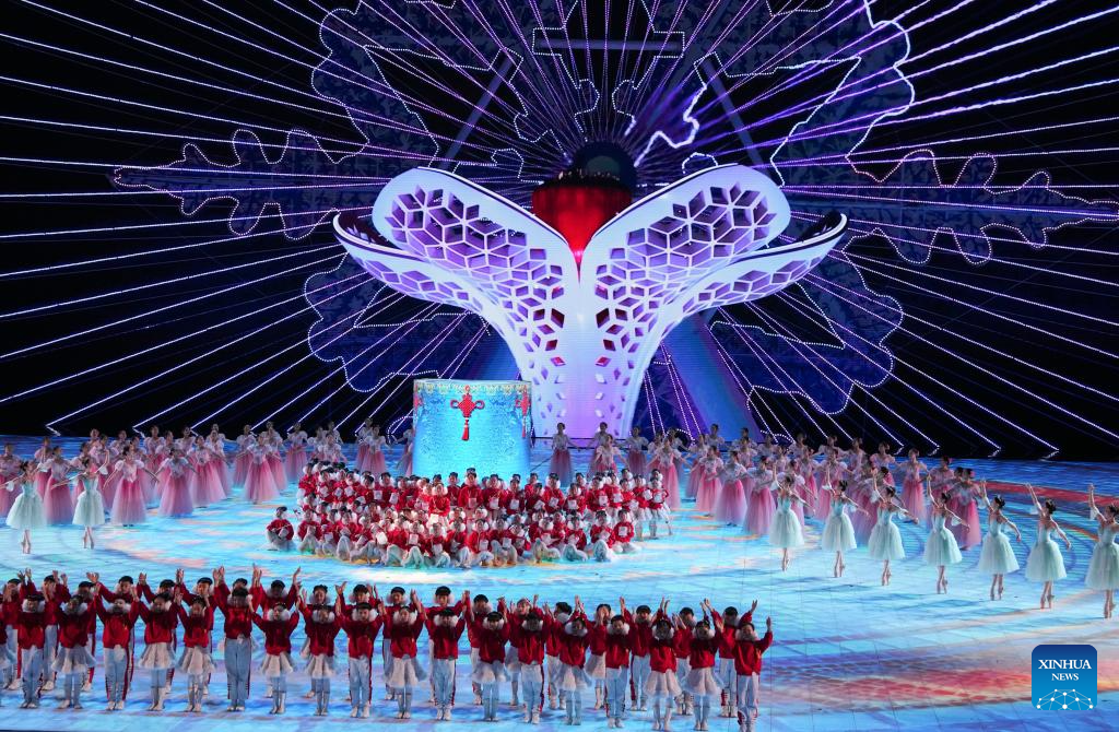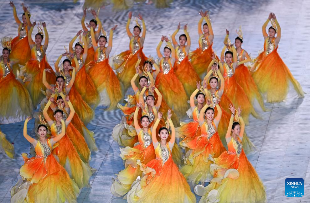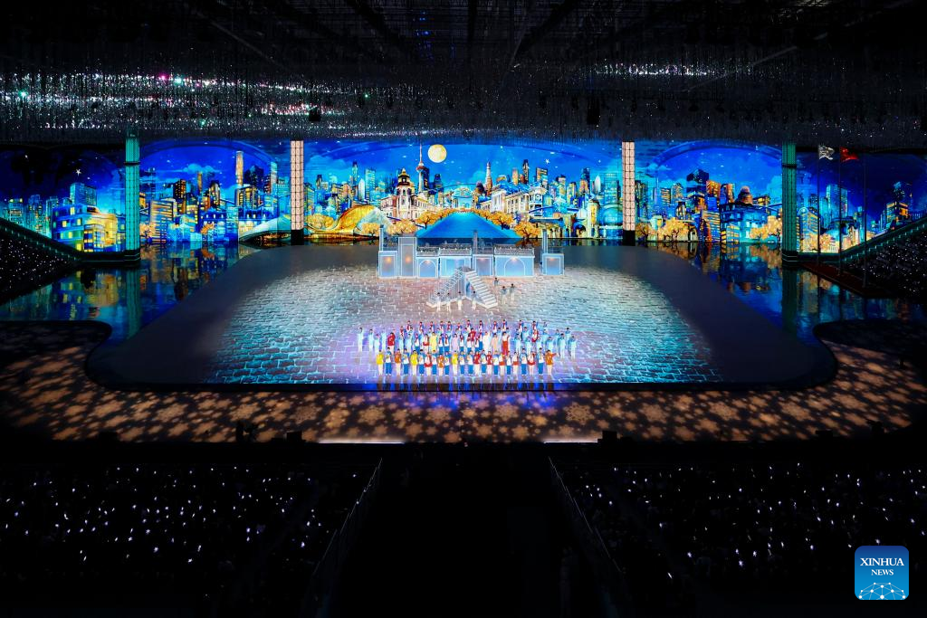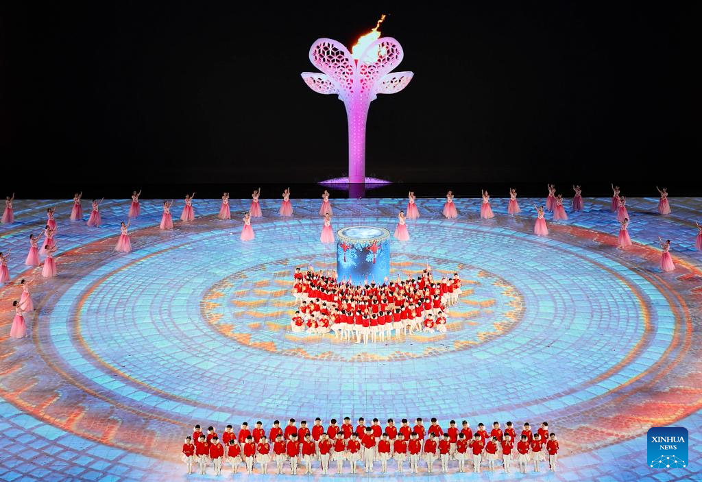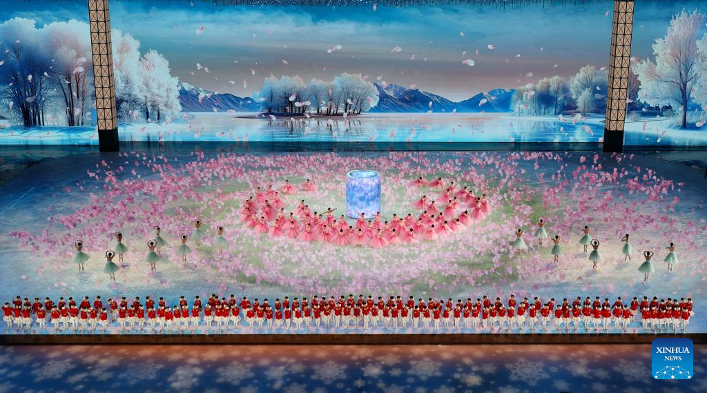 Artists perform during the closing ceremony of the 9th Asian Winter Games in Harbin, northeast China's Heilongjiang Province, Feb. 14, 2025. (Xinhua/Lai Xiangdong)