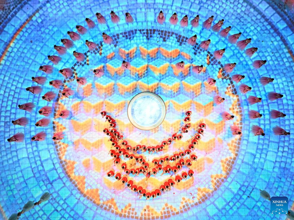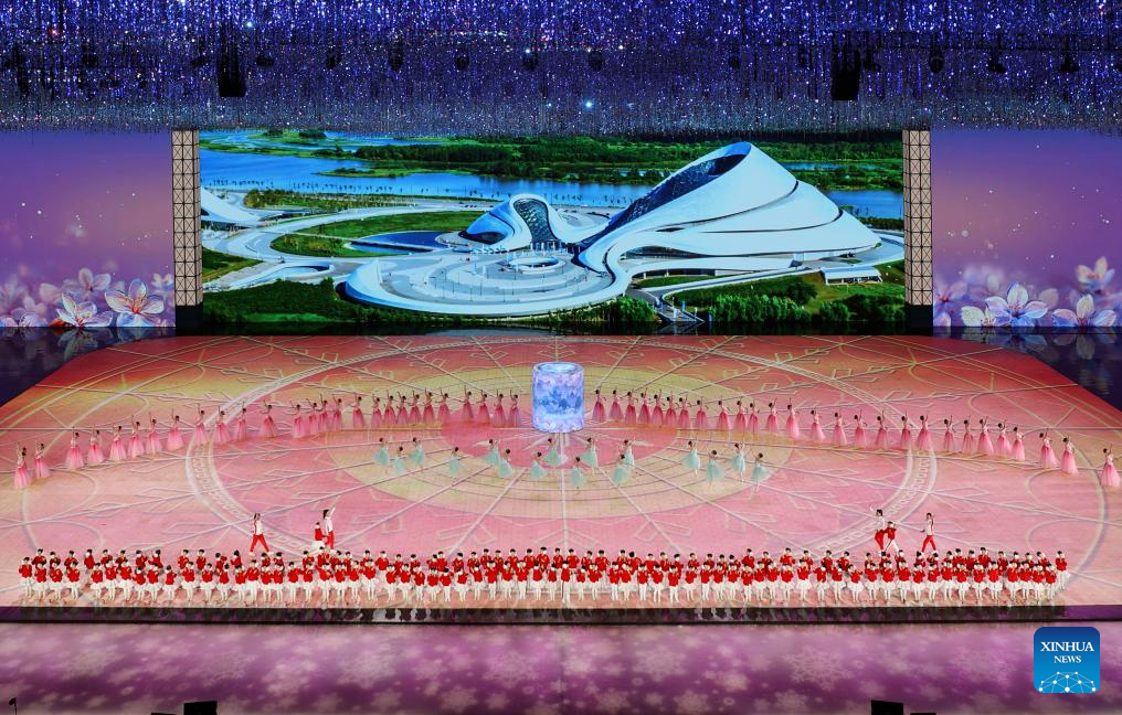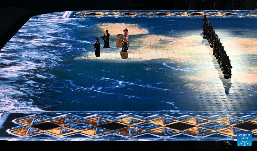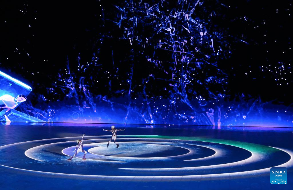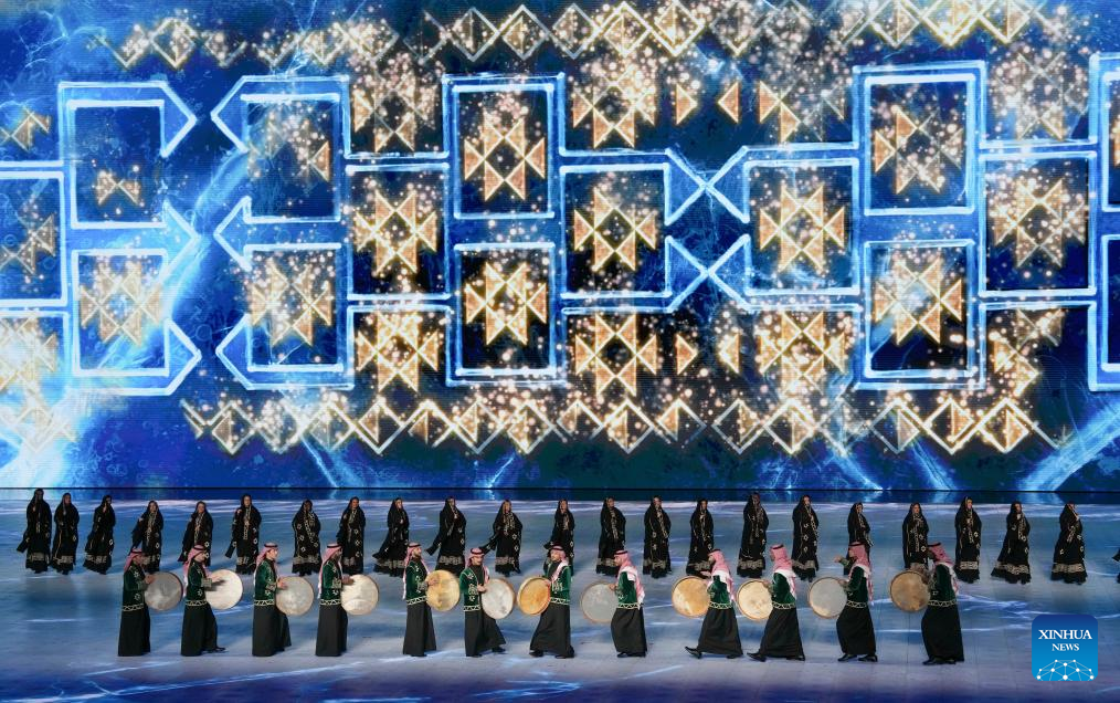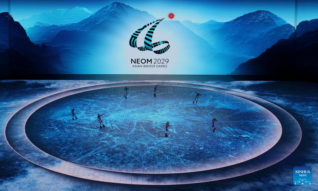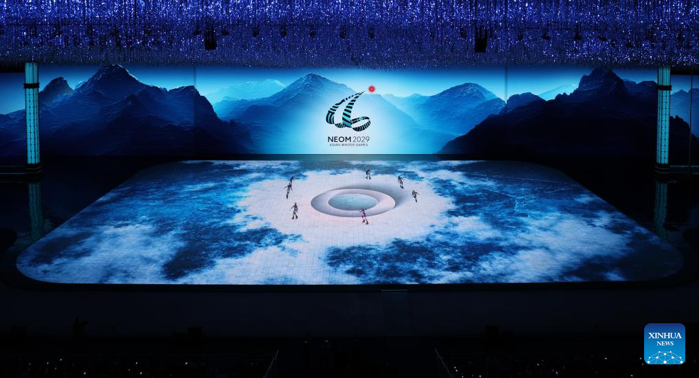 Artistic performance of the 10th Asian Winter Games host city Neom of Saudi Arabia is presented during the closing ceremony of the 9th Asian Winter Games in Harbin, northeast China's Heilongjiang Province, Feb. 14, 2025. (Xinhua/Lai Xiangdong)