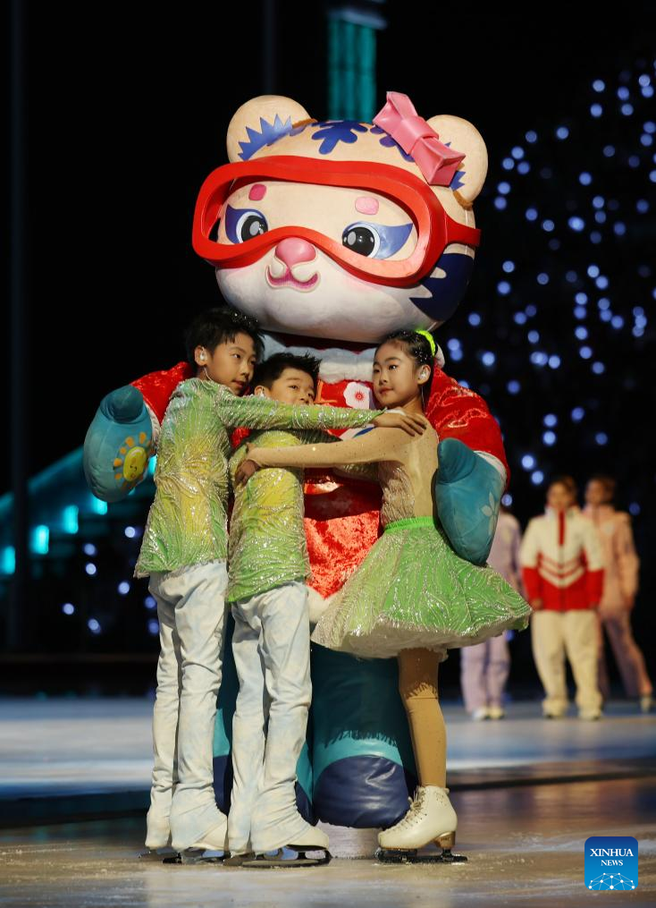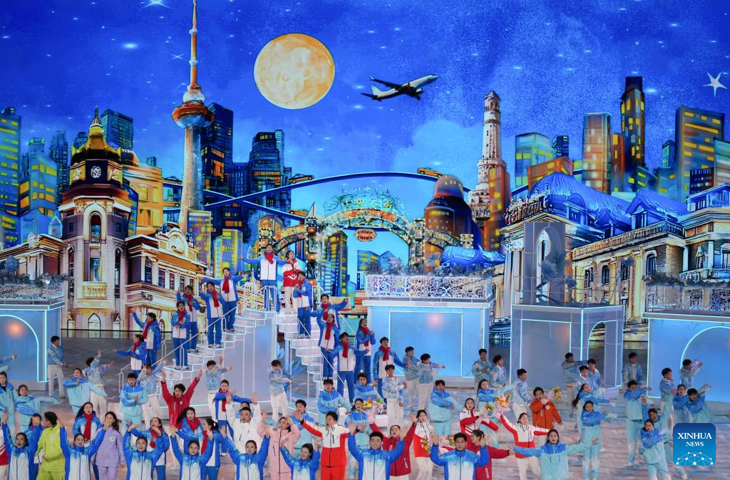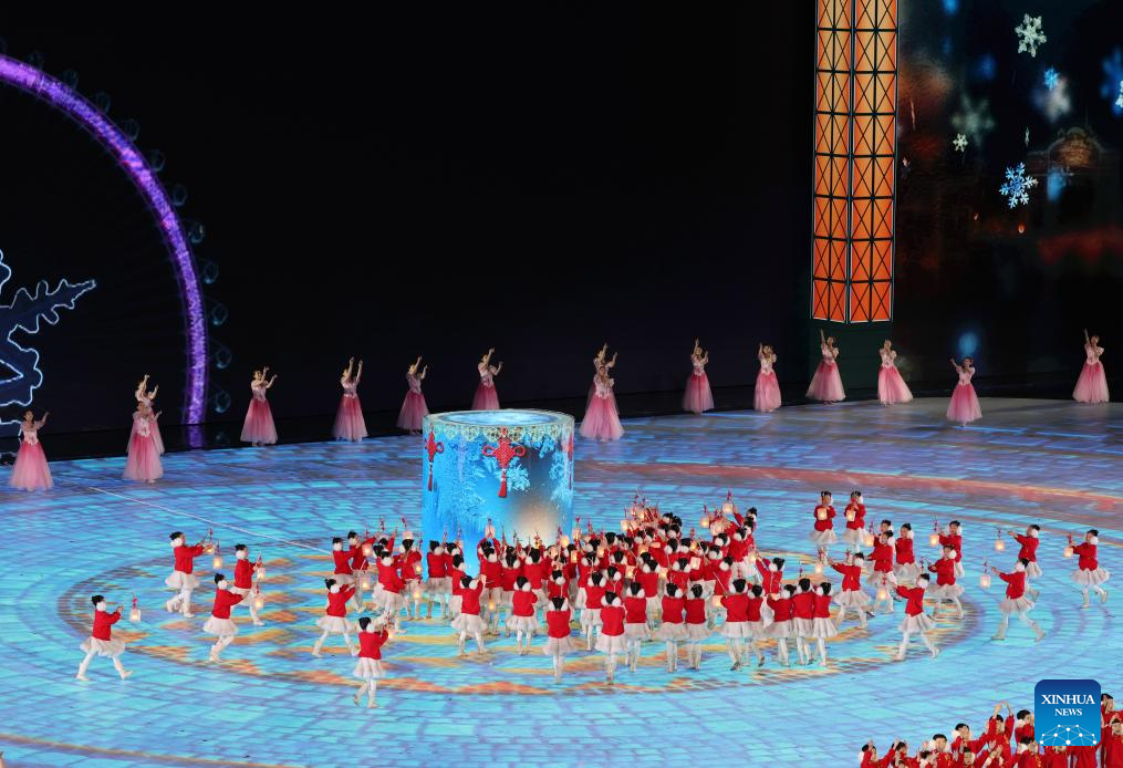 Children perform during the closing ceremony of the 9th Asian Winter Games in Harbin, northeast China's Heilongjiang Province, Feb. 14, 2025. (Xinhua/Xu Yanan)
