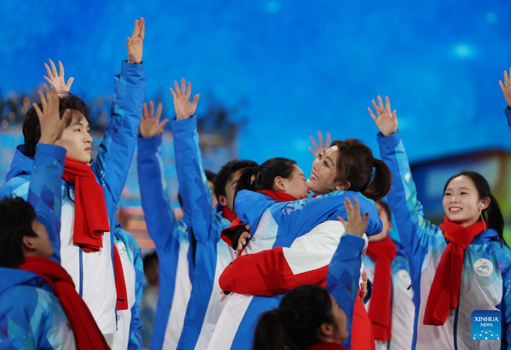 Delegation members of Thailand and the Democratic People's Republic of Korea attend the closing ceremony of the 9th Asian Winter Games in Harbin, northeast China's Heilongjiang Province, Feb. 14, 2025. (Xinhua/Zhang Tao)