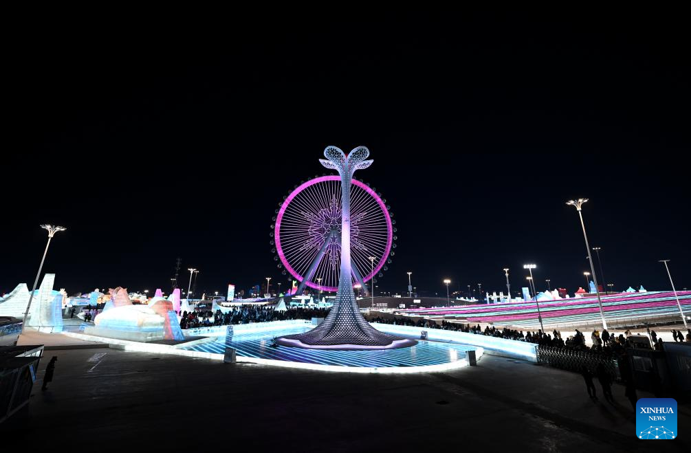 The Harbin Ice and Snow World Park is seen after the closing ceremony of the 9th Asian Winter Games in Harbin, northeast China's Heilongjiang Province, Feb. 14, 2025. (Xinhua/Sun Fei)
