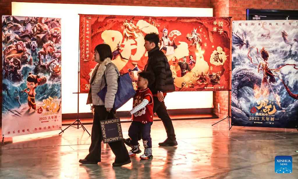 People walk into a cinema in Shenyang, northeast China's Liaoning Province, Feb. 3, 2025.(Xinhua/Pan Yulong)