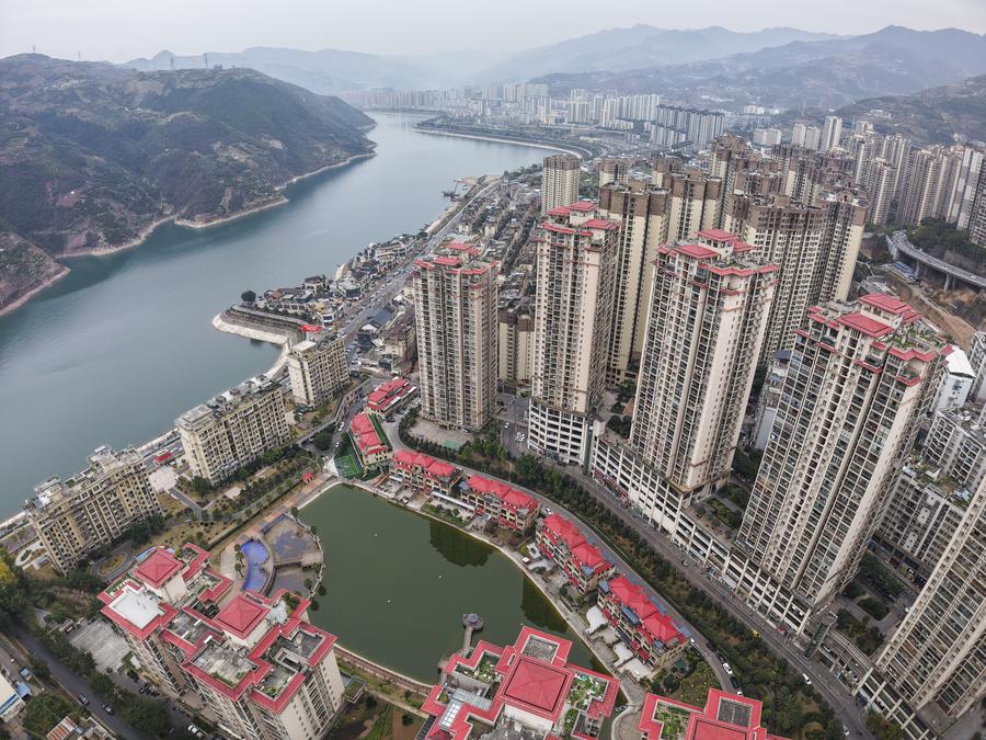 This photo taken on Feb. 13, 2025 shows a view of Fengjie County, southwest China's Chongqing Municipality. (Xinhua/Wang Quanchao)