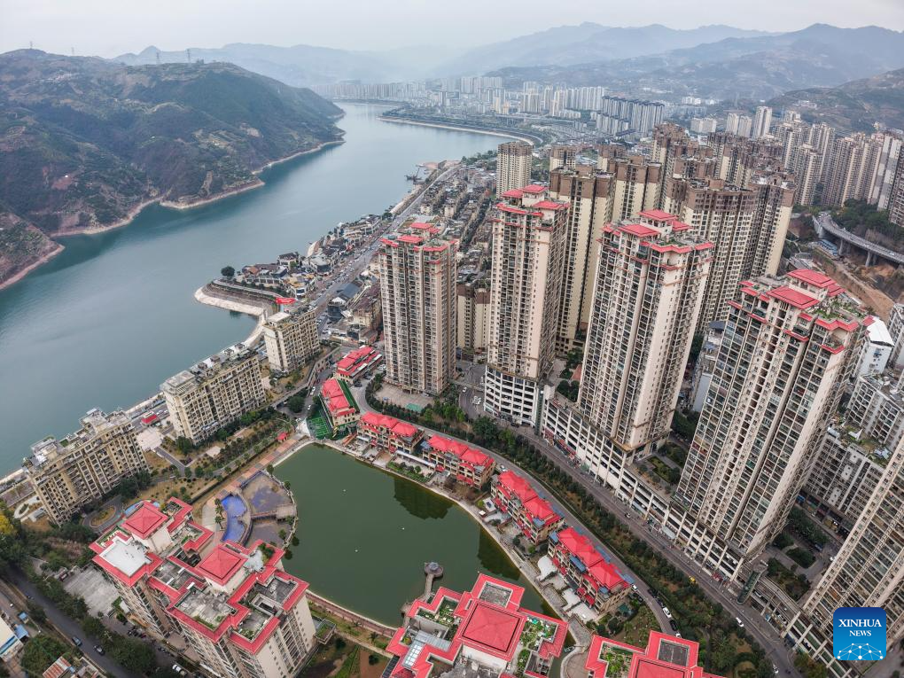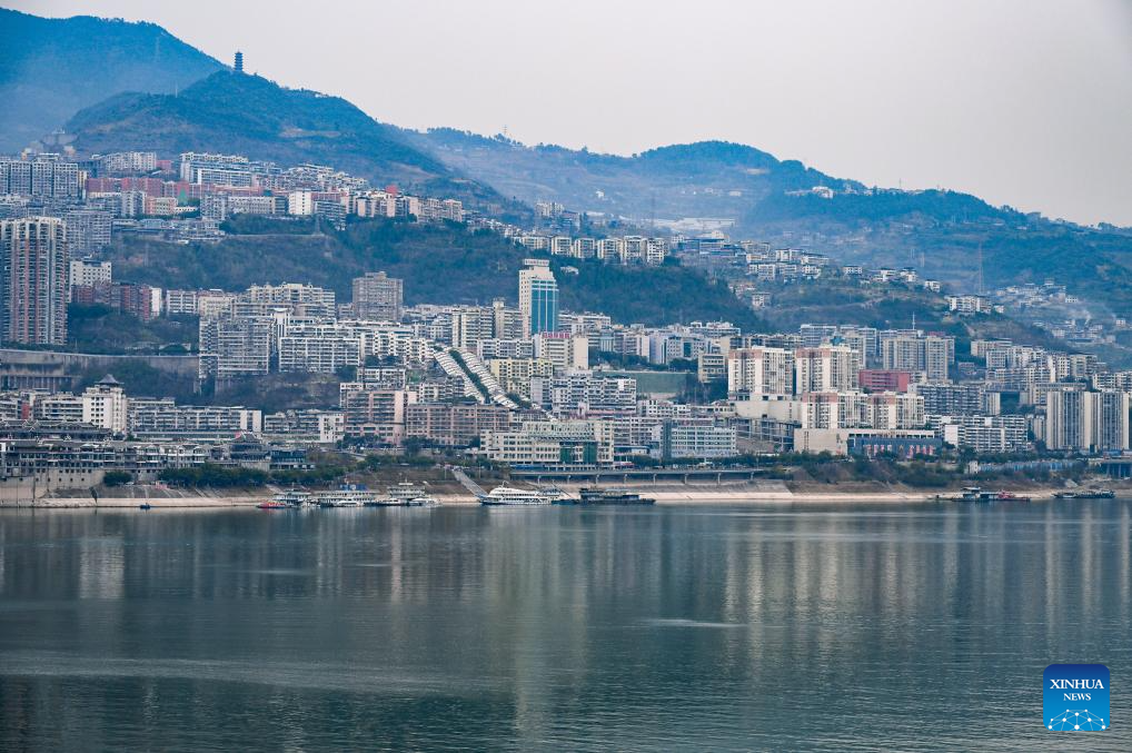 This photo taken on Feb. 12, 2025 shows a view of Fengjie County, southwest China's Chongqing Municipality. Fengjie, a county in Chongqing where the Kuimen gateway to the magnificent gorges of the Yangtze River is located, gained its reputation as the "city of poetry," as poets, military figures and politicians in history wrote extensively about the forbidding landscape of rapid currents and narrow waterways.
