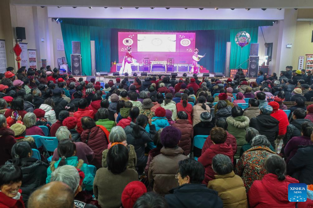 People watch an opera show in Ruhong Village of Chun'an County, east China's Zhejiang Province, Feb. 15, 2025. The Lantern Festival falls on the 15th day of the first lunar month, marking the end of the Chinese New Year celebrations. However, in Ruhong Village, people watch opera performance, solve lantern riddles and perform dragon dance to celebrate the festival on the 18th day of the first lunar month. The tradition has been kept and now become a signature tourism attraction. (Xinhua/Xu Yu)