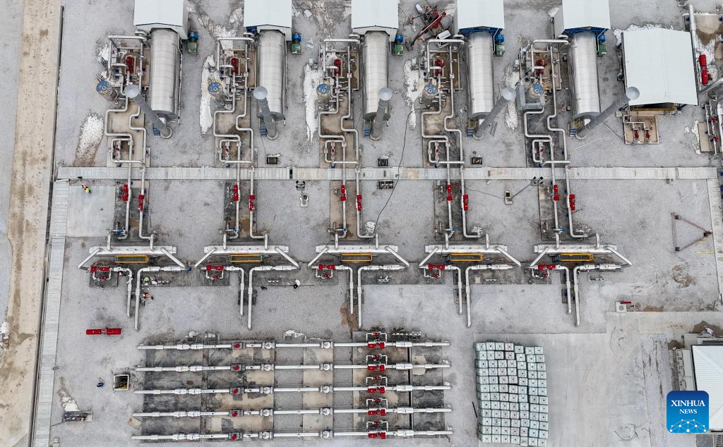 An aerial drone photo taken on Feb. 11, 2025 shows a view of the site of the Tuz Lake underground natural gas storage expansion project in Aksaray province, Türkiye. The core part of the expansion project, undertaken by China CAMC Engineering Co., Ltd., a subsidiary of China National Machinery Industry Corporation, has achieved mechanical completion recently. The expansion project officially kicked off in 2020, aiming to enhance Türkiye's clean energy infrastructure and contribute to its economic growth. (Xinhua/Liu Lei)
