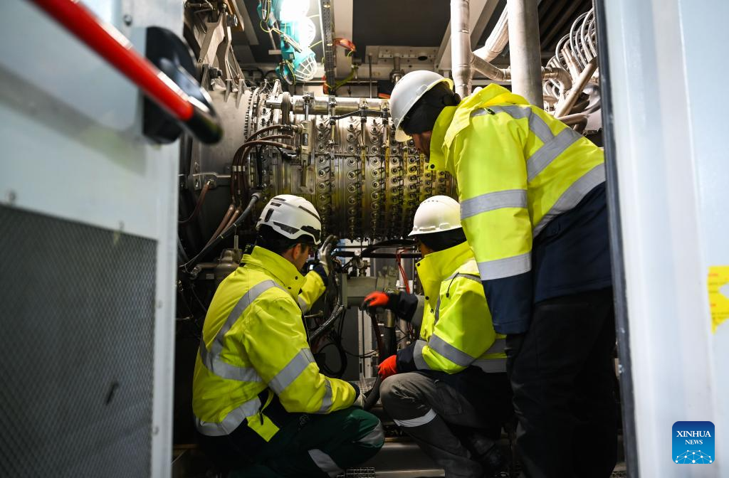 Chinese and Turkish staff members check equipment at the site of the Tuz Lake underground natural gas storage expansion project in Aksaray province, Türkiye, Feb. 12, 2025. The core part of the expansion project, undertaken by China CAMC Engineering Co., Ltd., a subsidiary of China National Machinery Industry Corporation, has achieved mechanical completion recently. The expansion project officially kicked off in 2020, aiming to enhance Türkiye's clean energy infrastructure and contribute to its economic growth. (Xinhua/Liu Lei)