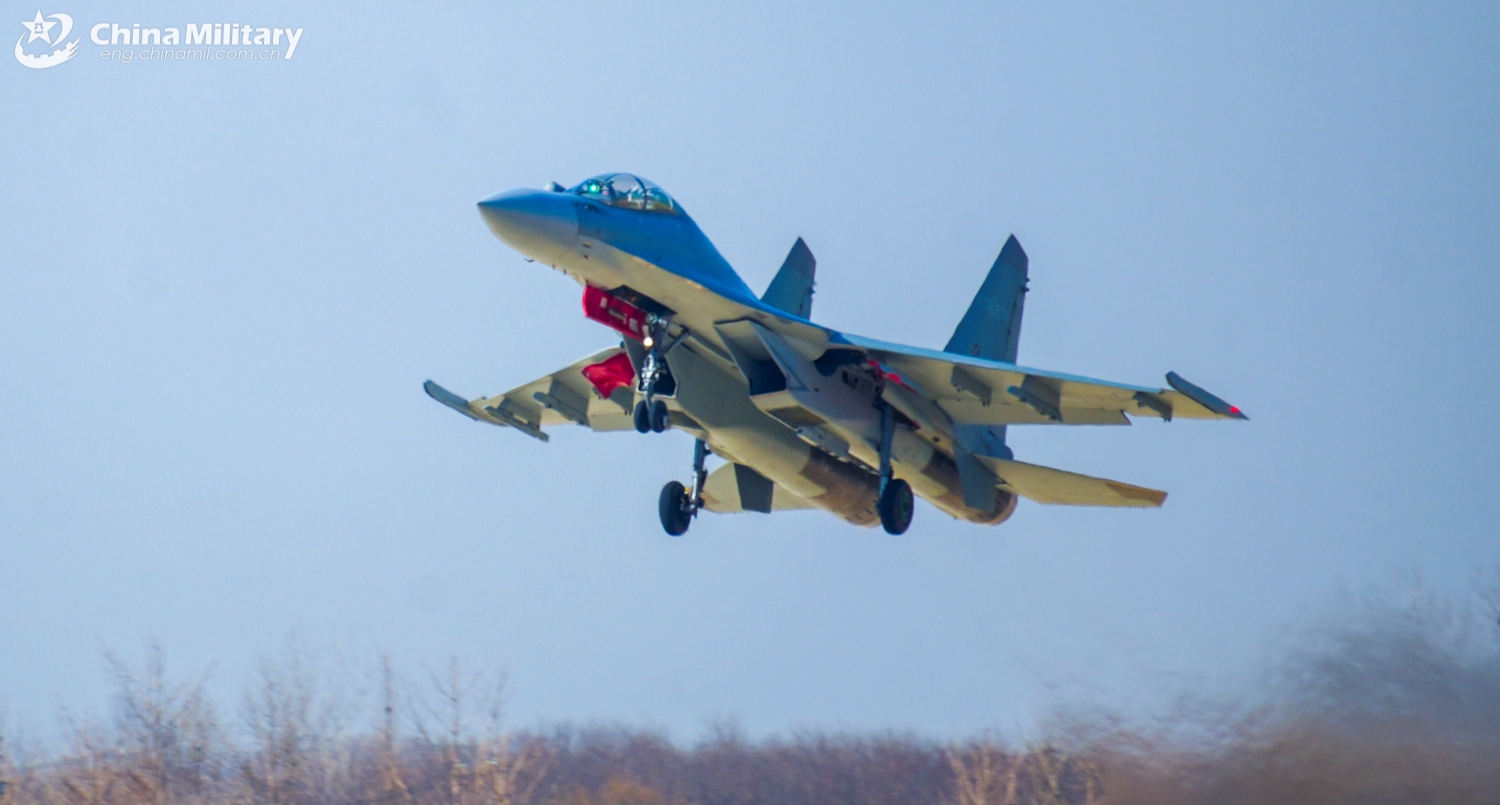 A J-16 multi-role fighter jet attached to an aviation brigade under the Chinese PLA Air Force takes off for a flight training exercise on January 16, 2025. (eng.chinamil.com.cn/Photo by Zhu Yunlong)