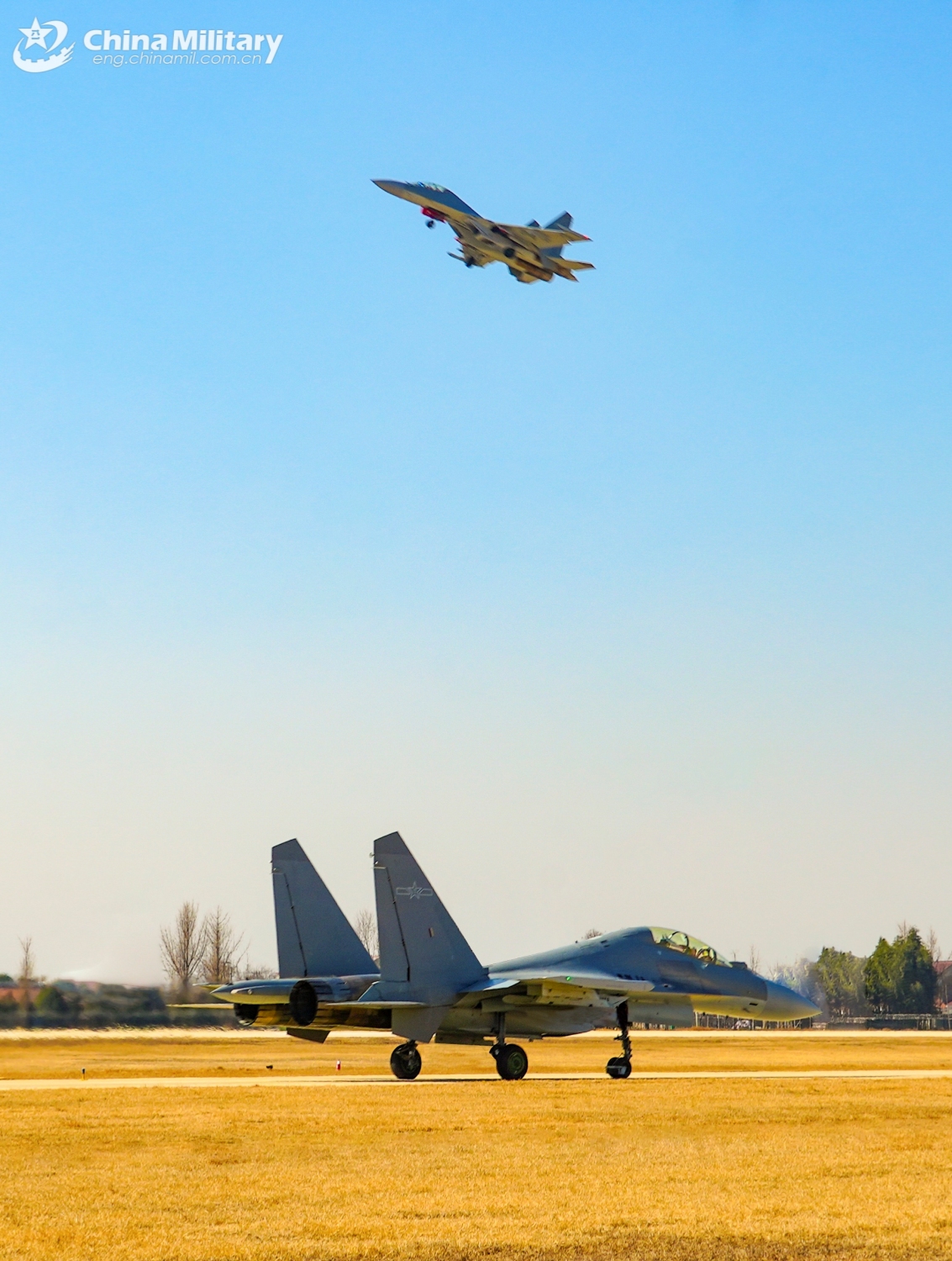 A J-16 multi-role fighter jet attached to an aviation brigade under the Chinese PLA Air Force takes off for a flight training exercise on January 16, 2025. (eng.chinamil.com.cn/Photo by Zhu Yunlong)