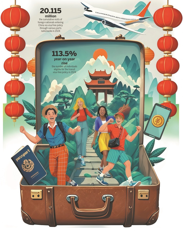 According to the latest data from the National Immigration Administration, the number of foreign visits entering China via the visa-free policy through various ports nationwide reached 20.115 million in 2024, marking a 112.3 percent year-on-year increase.
