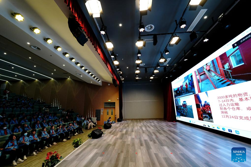 Students have a video call with members of China's 41st Antarctic expedition team at a middle school in Shanghai, east China, Feb. 17, 2025. With a mixture of nerves and excitement, many students in China attended their special first class of new semester. (Xinhua/Zhang Jiansong)