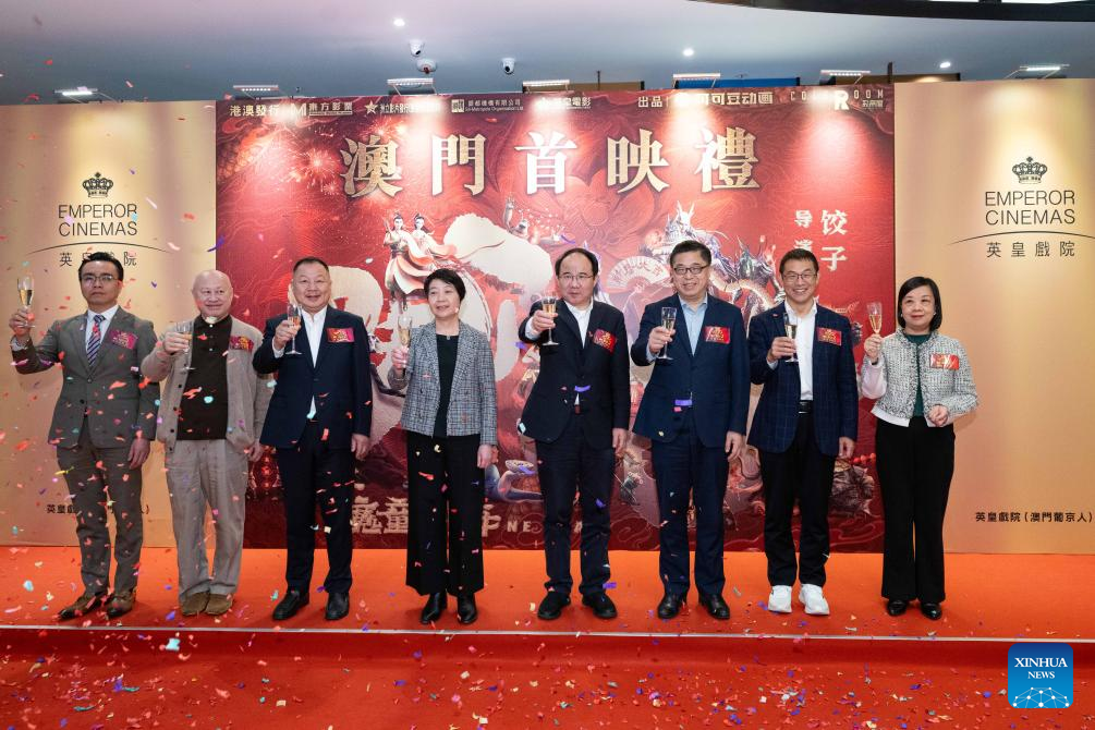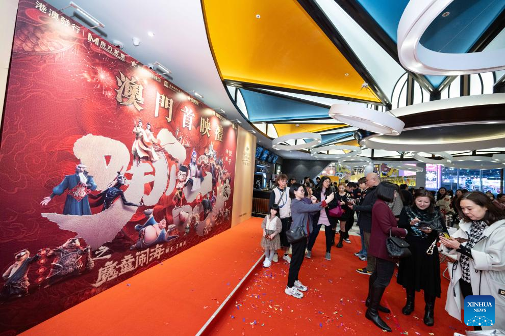 MACAO, Feb. 19 (Xinhua) -- Chinese mainland's animated blockbuster "Ne Zha 2" premiered on Wednesday night in Macao and was officially scheduled to hit Macao theaters on Saturday.