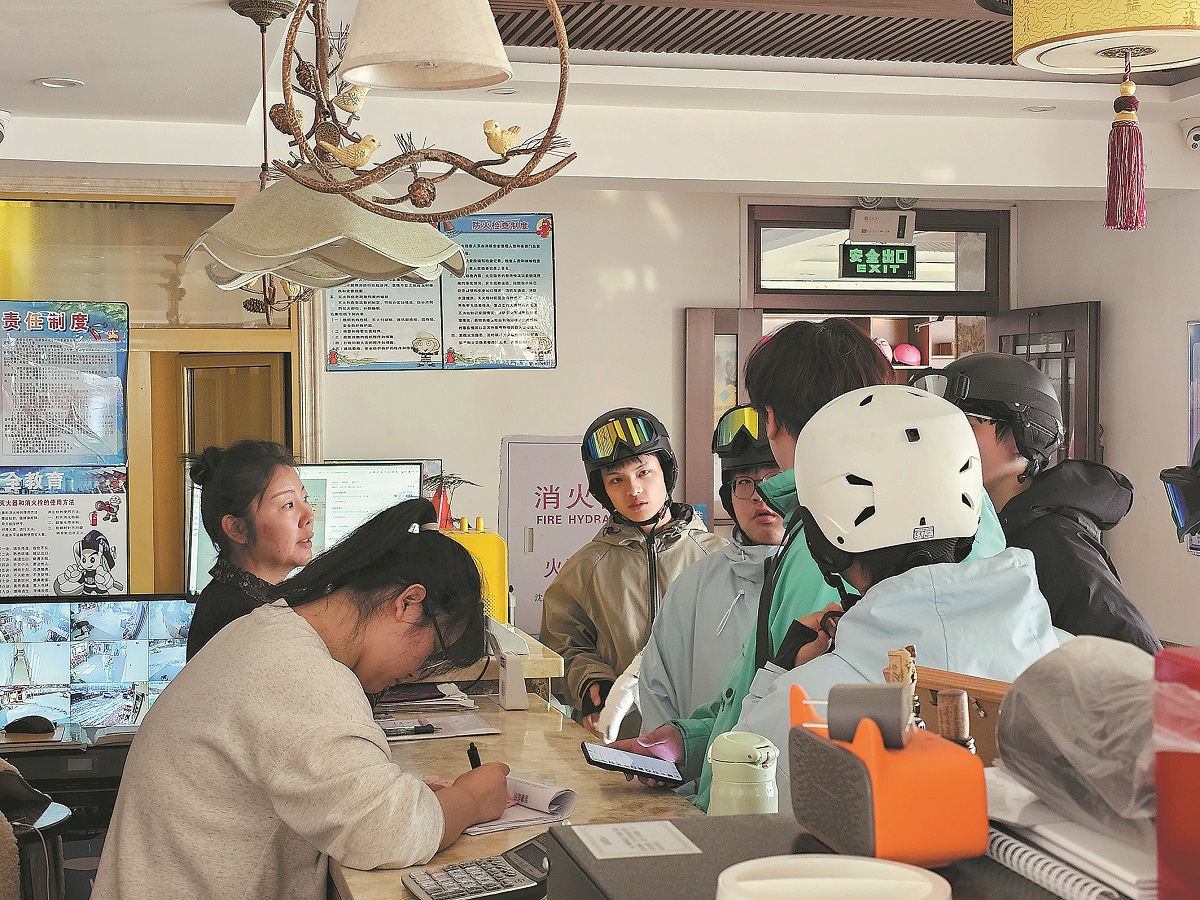 Tourists check in at a homestay in Qingshan village near Yabuli Ski Resort. (Sun Xiaoyu/Xinhua)