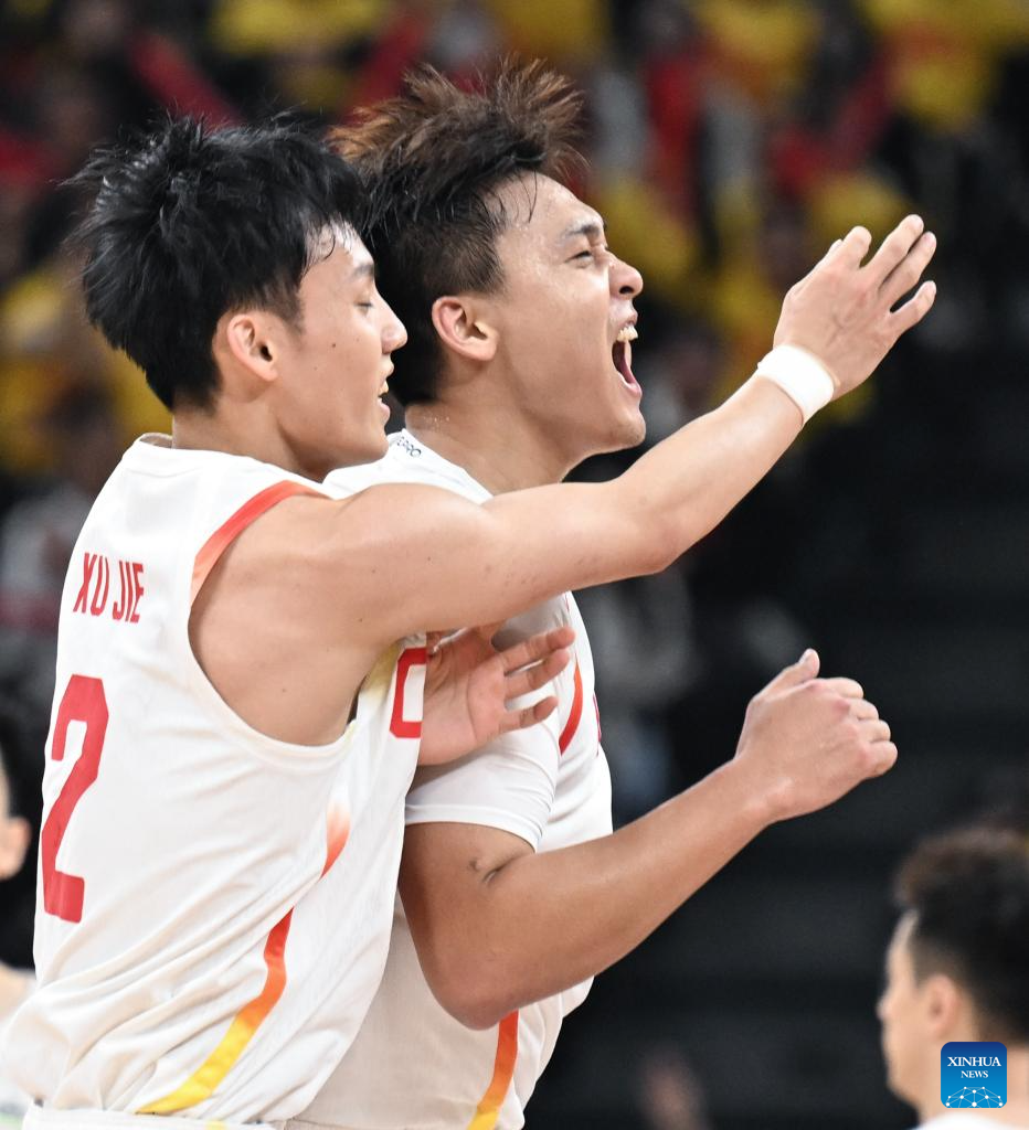 SHENZHEN, Feb. 20 (Xinhua) -- The Chinese men's basketball team won 100-58 over Japan in a Group C game of the 2025 FIBA Asia Cup qualifiers on Thursday evening, securing its place in the Asia Cup.