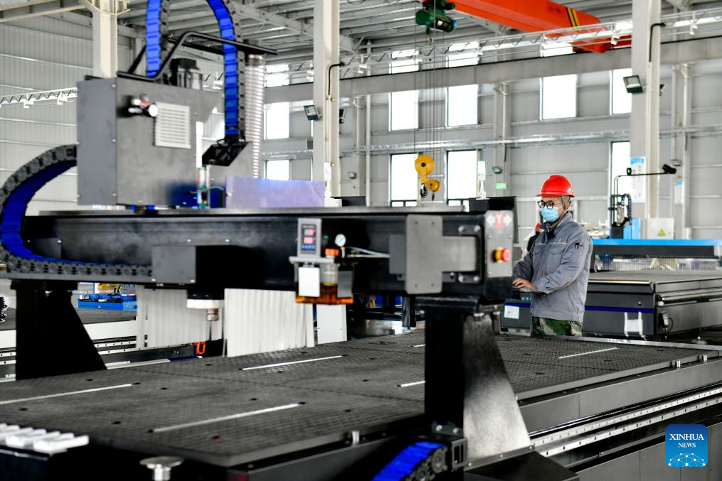A staff member calibrates an engraving machine in Rizhao Huiming Machinery Equipment Co., Ltd. in Rizhao, east China's Shandong Province, Feb. 22, 2025. In recent years, local authorities in Rizhao have made efforts to assist traditional advantageous industries in innovating and develop an array of emerging and future-oriented industries. (Xinhua/Guo Xulei)
