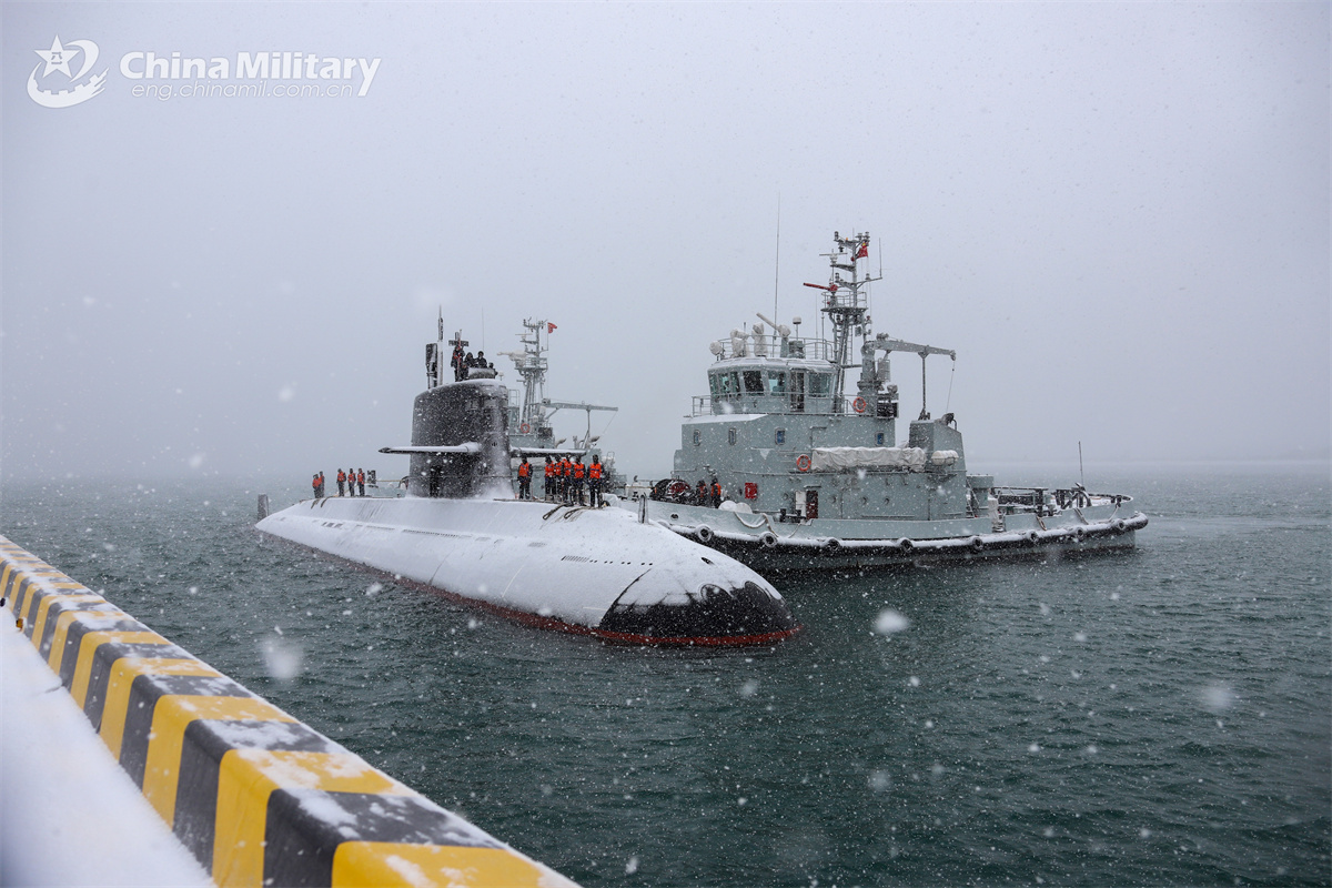 A submarine attached to a submarine flotilla with the navy under the Chinese PLA Northern Theater Command steams toward the designated area for a combat training exercise in mid-February 2025. (eng.chinamil.com.cn/Photo by Zhang Nan)