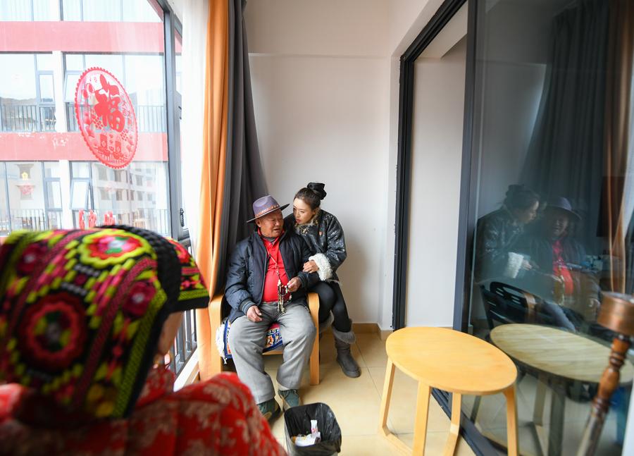Gexi Wangmu greets seniors at an elderly care center in Maerkang City, Aba Tibetan-Qiang Autonomous Prefecture, southwest China's Sichuan Province, Feb. 18, 2025. (Xinhua/Wang Xi)