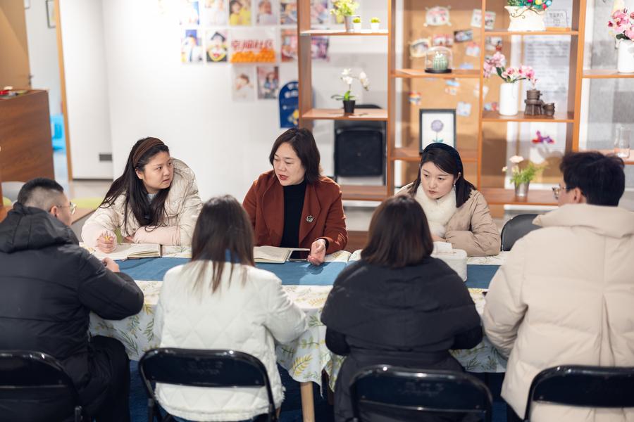 Wu Chengli and her colleagues work to address residents' concerns at Minzhu Village Community in Xiejiawan Sub-district of Jiulongpo District, southwest China's Chongqing Municipality, Feb. 25, 2025. (Xinhua/Huang Wei)